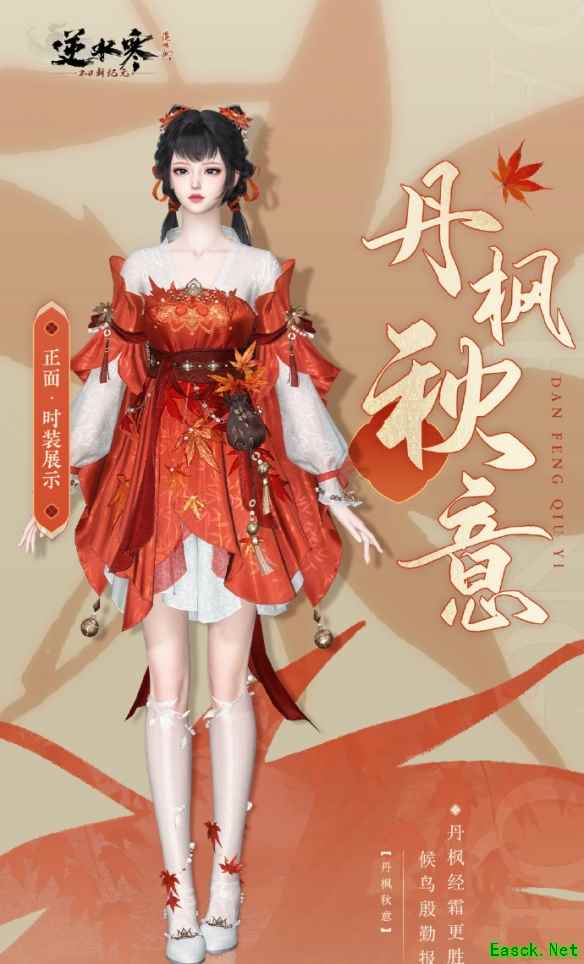 《逆水寒手游》丹枫秋意即将在11月28日上线,那么逆水寒丹枫秋意时装长什么样呢,时装以橙色和白色为主,售价6元,购买后可获得对应性别时装及配套发型,接下来就由小编给大家带来了详细的《逆水寒手游》丹枫秋意外观一览!