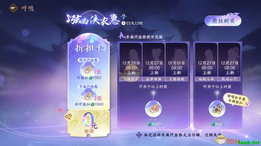 2、外观半价券、滑板坐骑免费领 12月27日版本更新后当天直接拿 外观半价券、1000纹玉代金券(限时)、300纹玉代金券(限时) 新滑板坐骑【风行·江湖景】、配饰【四方雪】、趣味动作【向前看】(后续可领) 1500绑定纹玉、166绑定纹玉(后续可领)、百万交子(后续可领)
