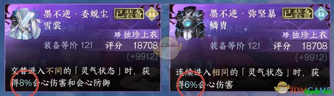 1、攻克流 上衣加工成黑色的【墨不逆·弥坚暴鳞胄】,配合加工雷灵气的手镯稳定吃6%的会伤+350命中+满特性的圣巫腰带。命中如果溢出可以选择碎梦/龙吟大特质。 上半身:独珍武器+圣巫腰带(加工破防)+墨不逆黑衣服。其他位置填充百炼装备 下半身:野利白妙手镯(加工雷灵气)+新橙戒+琅影/龟何年项链。其他位置填充百炼装备 2、元素流 上衣加工成白色的【墨不逆·委蜕尘雪裳】,吃概率8%的会伤,下半身经测试可选搭配较多。 上半身:独珍武器+将却头盔(加工忽视)+墨不逆白衣服。其他位置填充百炼装备 下半身:优先凑123装等百炼两件套,主要有以下三种情况。①如果有两个123百炼手镯,则选幽烛侍者戒指+新橙戒+司烬项链;②如果有123百炼手镯和项链,则选幽烛侍者戒+野利白妙手镯(不加工)+新橙戒,不要独珍项链;③如果是123百炼手镯和戒指,则选野利白妙手镯(不加工)+新橙戒+司烬项链。总体来说第一套综合最优,第二套比较稳定,第三套秒伤浮动最大。 |
