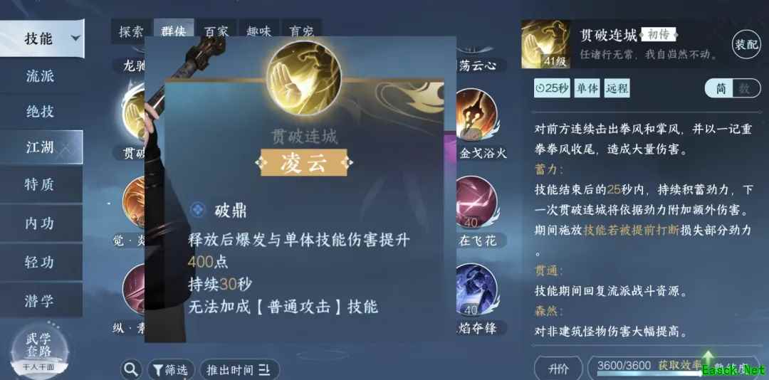 2、绝技·剑霄飞流 抽取建议:PVE之前抽过苍冥无昼或万想鹰扬的就不推荐抽了,PVP可根据其功能性选择。技能动画很帅,喜欢的也可以抽。 新绝技伤害对比苍冥无昼差距不大,部分职业有一点提升。注意苍冥无昼的赛季加成效果持续到约2月底,而剑霄飞流的加成会持续到6月底。