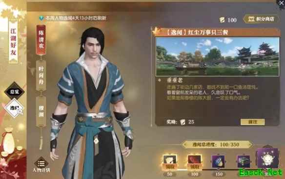 《逆水寒手游》三餐垂垂老任务攻略:、先打开逸闻找到NPC【陈清欢】然后接取任务【红尘万事只三餐·垂垂老】;