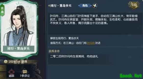 《逆水寒手游》雾岛步天奇遇攻略:1、给【叶问舟】送礼物,好感达到条件才能触发卡片;