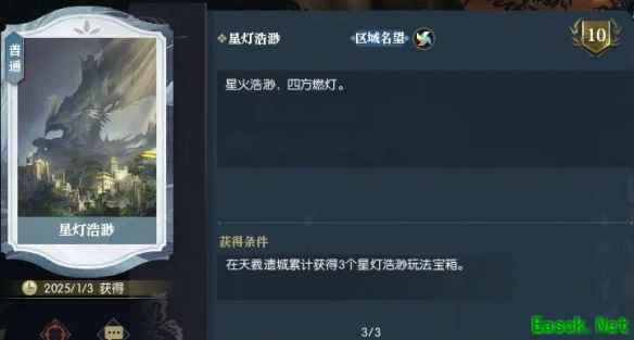 星灯浩渺是天羲遗城区域的名望卡,很多玩家想知道星灯浩渺怎么获得,玩家参与天羲遗城的星灯浩渺玩法并累计获得3个星灯浩渺玩法宝箱即可触发该卡片,接下来就由小编给大家带来了详细的《逆水寒手游》说英雄卡星灯浩渺获得方法!