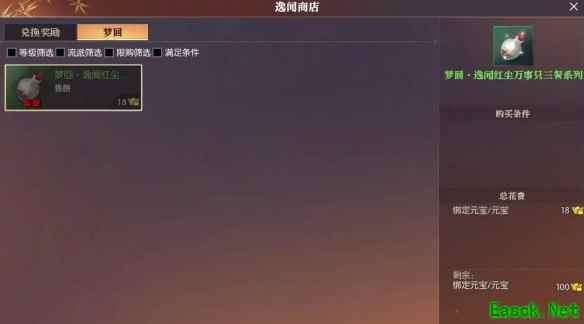 2、在梦回页面花18绑定元宝购买梦回丹选择【梦回·逸闻红尘万事只三餐】;