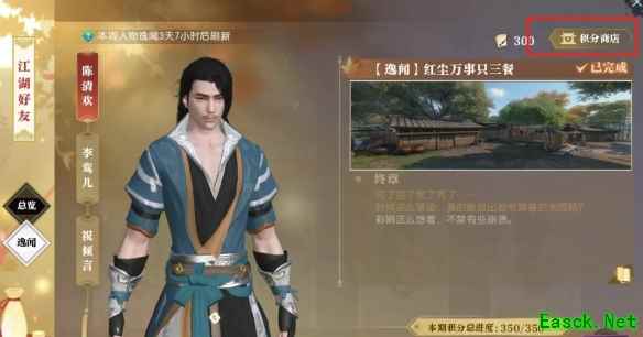 《逆水寒手游》说英雄卡梦回红尘万事只三餐获得方法:1、首先要完成所有的陈清欢逸闻【红尘万事只三餐】然后打开【积分商店】;
