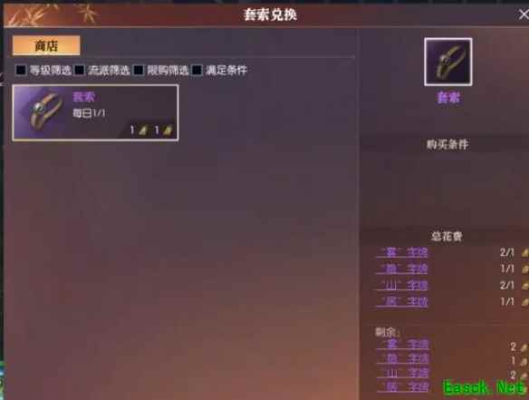 2、对话【杨绵绵】领取字牌然后点击牌子【雾、隐、山、居】合成一个套索;