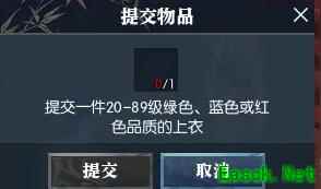 5、玩家需要提交绿、蓝或者红色品质20-89级的上衣然后完成奇遇。