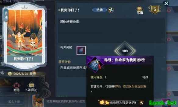 3、全部找完后获得说英雄卡【找到你们了】和称号【你也很为我捉迷吧!】。