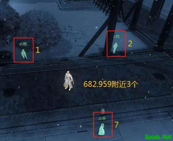 2、附近有7个小孩NPC,玩家在2分钟内找到即可完成小游戏; 682.959附近3个:小祝、小同、小乐
