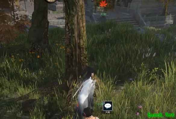 2、互动大树后来到(929.380)树下挖掘获得一个箱子;