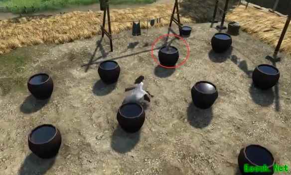 3、靠近前面的酒坛,玩家需要使用技能把猴子从酒缸里面赶出去,赶50只完成游戏;