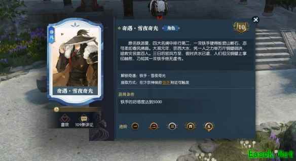 《逆水寒手游》雪夜奇光奇遇攻略:1、铁手好感5000触发卡片,去汴京(709.699)铁手附近触发奇遇;