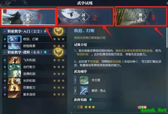 《逆水寒手游》试炼峰玩法介绍:1、首先打开技能面板然后点左下角的【试炼】进入试炼峰玩法; 2、该系统有三个玩法,分为:职业、战斗、挑战;