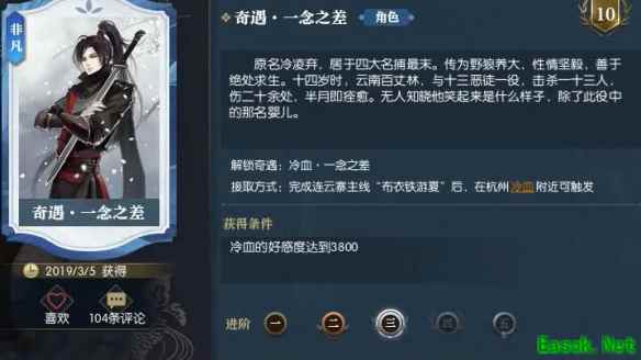 《逆水寒手游》一念之差奇遇攻略:1、冷血3800好感剧情,需要先完成连云寨的主线才能触发卡片;