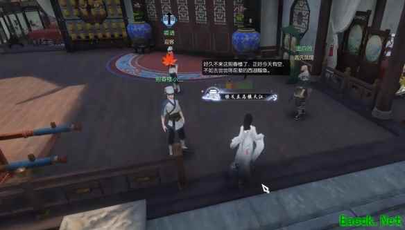 2、对话【熙春楼小二】然后和旁边的桌子进行互动再去对话【熙春楼小二】;