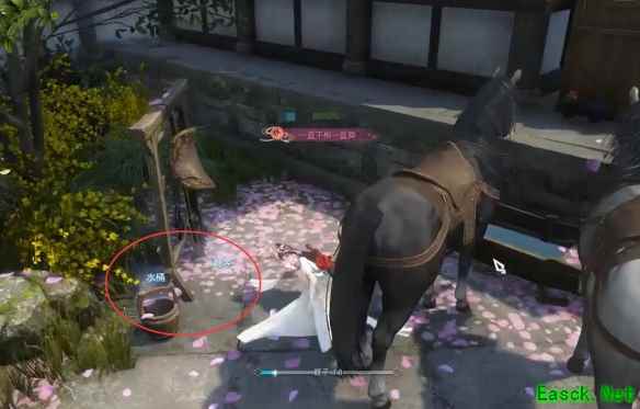 2、点自动寻路去周边捡起鞭子和水桶,再次对话【赵白川】;