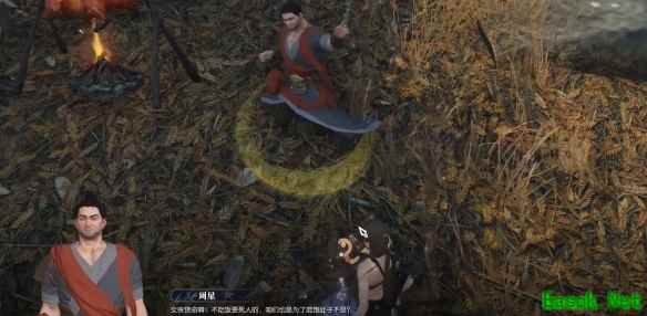 3、击败盗猪贼对话后去找小猪崽追着光圈找,采摘猪儿草后对着猪崽用