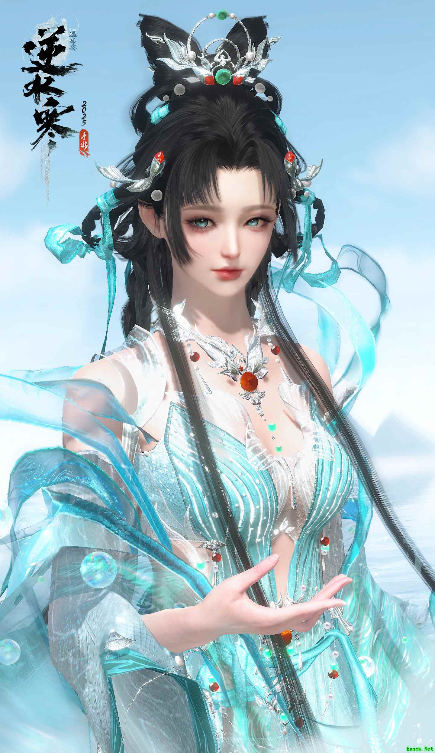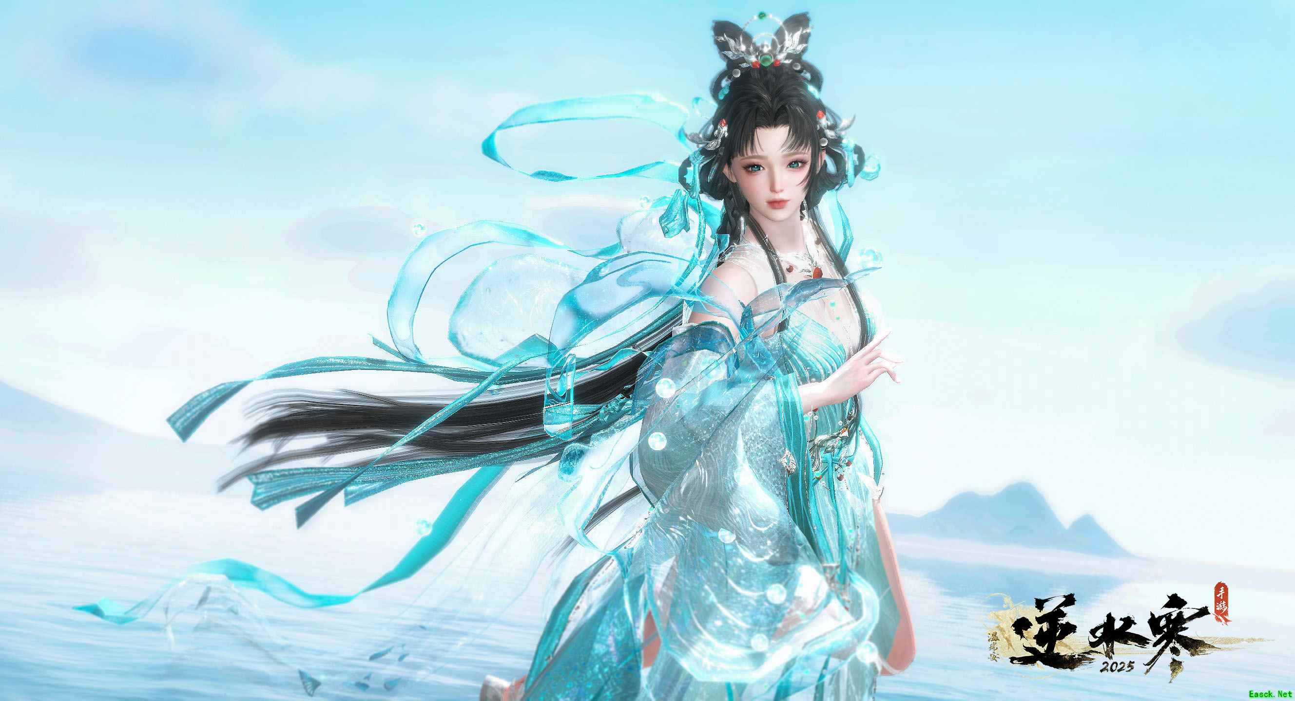 《逆水寒手游》洛神芳蔼皮肤一览:微幽兰之芳蔼兮,步踟蹰于山隅。女款时装【洛神芳蔼】,重点描绘了神祇的高洁。水是她的灵魂,深浅不一的蓝色模拟描绘出水的波纹。她自洛水烟波中踏月而来,裙摆漾开的不是丝绸,而是神女垂泪时眼泪化作的珍珠。