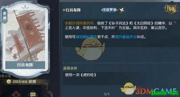 3、使用《虎钤经》后就能获得说英雄卡【行兵布阵】;