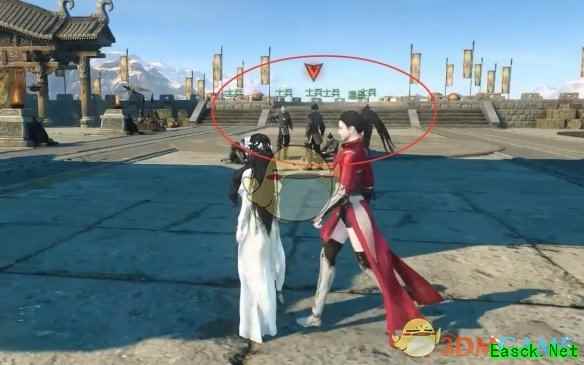 3、城门上对话【袁源】,进光圈击败守门士兵,互动机关跳下去;