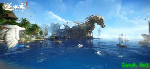 画质压缩严重,游戏内效果更佳 但是,美丽只是它最微不足道的优点之一,逐浪湾逐浪湾,顾名思义,它的使命就是冒险与追逐,它是为乘风破浪而生的地方! 作为距离澜都最近的巨型岛屿,一方面,逐浪湾紧靠澜都,拥有广阔的经济腹地支撑;另一方面,逐浪湾位于澜都外海,潮汐差距小,波浪平稳的同时,水深又非常可观。得天独厚的地理条件,让它成为了先天的港口圣体,最适宜船只停靠。