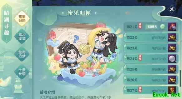 《逆水寒手游》说英雄卡中级收纳师获得方法:1、在2025年五一活动期间上线游戏去参与晴湖寻趣【蜜果归匣】活动;