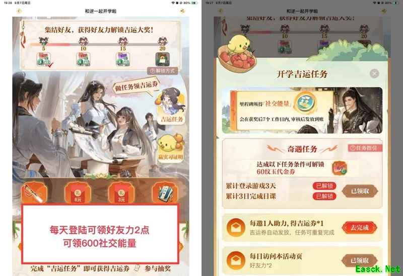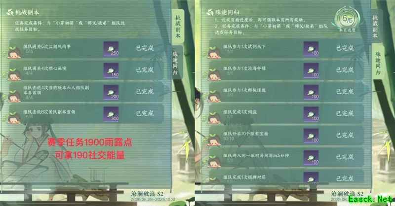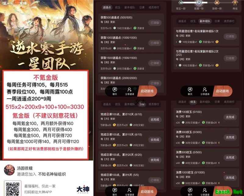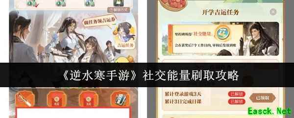 《逆水寒手游》社交能量刷取攻略写在开头,社交能量不用急,按步骤来一步一步也能拿到,有两个月时间 参与开学季任务 每天登陆签到可拿2点好友力,一个月可拿600能量(最后一档需要邀请小芽) 赛季任务雨露点 和师徒或者小芽一起完成可拿190能量 大神星团活动(主要能量来源)