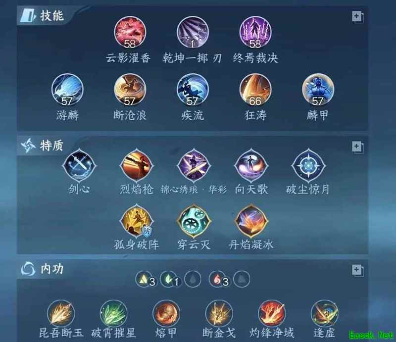 内功: 1.日月两仪没有灵韵词条就不用 2.昆吾断玉打击杀必带 3.断金戈可换灭阵 熔甲可换梵铃决或者坠虚烬 优先用好词条内功