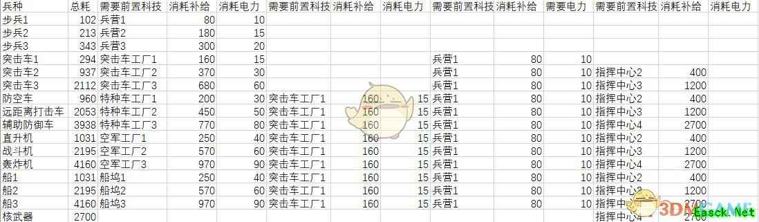 反抗军和盟军科技兵种科技树如上表,另外建筑数量也受制于指挥中心等级,双方科技树完全一样,易于平衡但是缺乏多样性。希望官方图文并茂画个科技树出来。电力按照发电厂的效率折算成为补给最后计入总耗,反抗军的科技消耗稍微低一点。没有自动生产功能,几乎没有自动寻路功能(在凹形墙壁内会撞墙),玩家需要一个个建造、升级、生产,用框选、单选等方式操纵军队移动攻击,操作量需要APM50以上才能保证持续生产和战斗。2级船、3级突击车、战斗机是海陆空性价比最高的兵种,一般出到2级突击车就能推倒狙击塔或碉堡而决定胜负了,摧毁敌方所有指挥中心即可获胜,一般10到60分钟一局游戏。