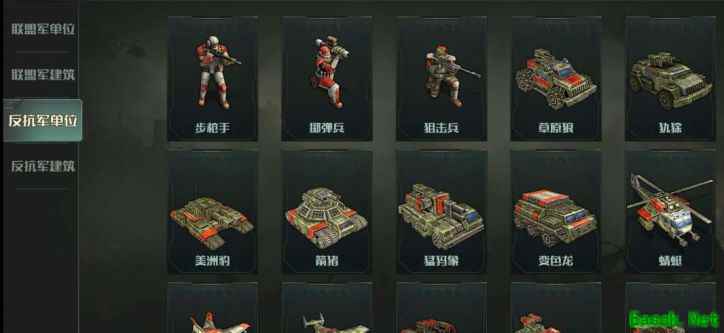 《全球行动》战车战术选择指南在整个游戏的战术系统中一共包含着三项有关战车的战术。分别是战车生产、战车机动与战车攻击,每一项战术都对应着战车单位指定属性的提升。 游戏内对战车单位的定义是从突击车工厂与特种车工厂生产出来的单位。以反抗军为例,下面两张图分别会列出生产战车的建筑以及游戏内战车单位的图例: