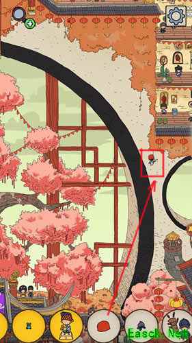 安全帽位置介绍: 安全帽在大拱门右侧区域,有一个刷墙的工人头上戴着的,如下图: