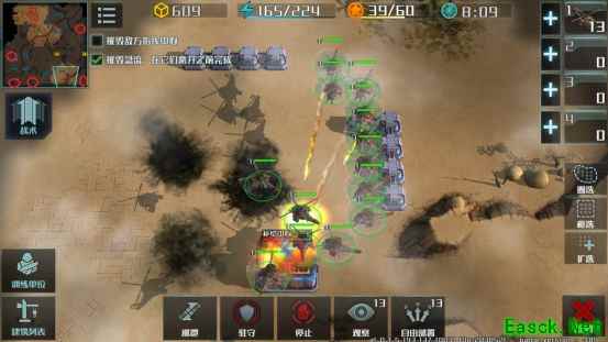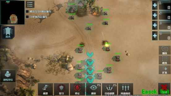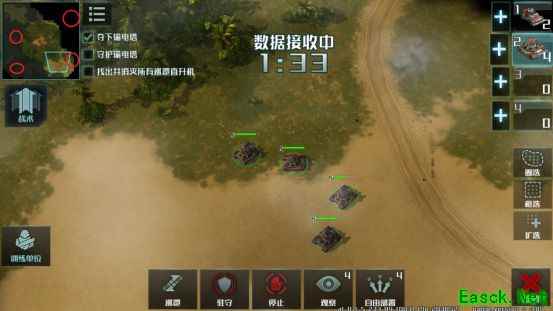 前方战火激烈,而我们更应该保障后勤工作的有序进行。此关任务为救出至少一辆运输车,在行进过程中保护所有运输车,最终安全到达前线便可。开局系统分配给我们三架直升机和数辆突击车进行守护。行进过程中我们最好将直升机分组归类,突击车同样如此。路程过半时派直升机小组前去清理对方架起的急流轰炸车,接下来便用突击车清理行进间的敌人,便可轻松过关。
