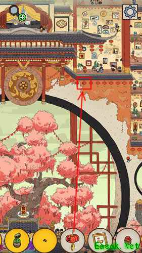 灯笼位置介绍: 灯笼在大拱门右上角瓦片下面,如下图: