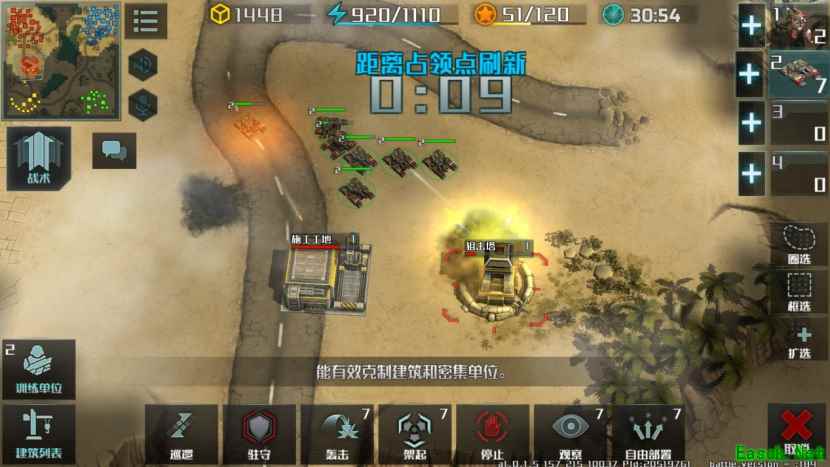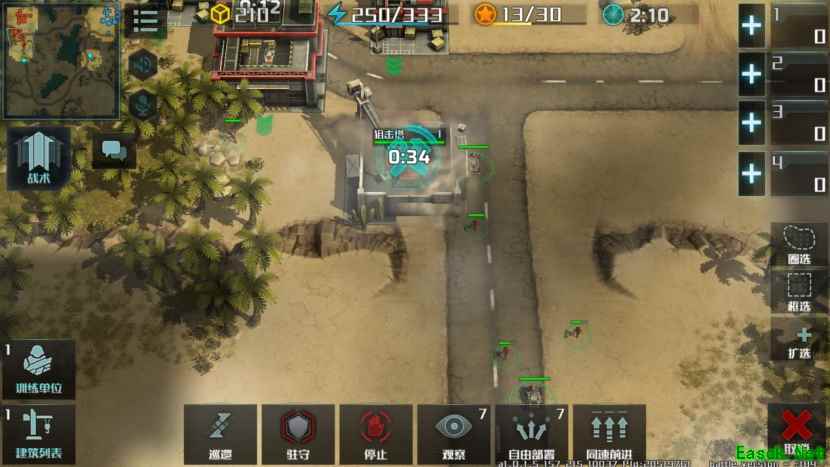 这样在第一轮资源点刷新后能保证有充足的部队前往进行争夺,站位上要注意小兵在后方,突击车在前方,因为对方如果是联盟军的话,喷出的火焰是可以大面积杀伤我方小兵,所以站位很重要。 前期如果取得了优势,击毁了对方大部分兵力后,可直接推进对方家中,来一波快速进攻,后续生产出的部队也全部推进对方家中,配合队友一波带走。如果我们前期没有取得优势,被对方合兵压回,那要在家中快速建造狙击塔进行防守。对方基本上不会有太多兵力来合围我们,毕竟还有盟友存在,所以这样可以安然度到中期。