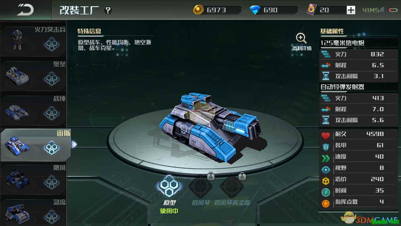 4、然后将三级战车宙斯制作好,在做特种军工厂,做好特种军工厂后优先做飓风,飓风拥有较强的防空能力,可以有效的防止飞机流。 (下图第一张是宙斯,第二张是飓风)