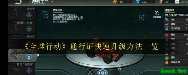 《全球行动》通行证快速升级方法一览通行证玩法 今天给大家带来通行证的正确使用方法。 通行证是仿战令的一个产物,其四十级和六十级的大礼物就是战车生产和突一级车的“勇士皮肤了。 勇士的属性大家显而易见除了火力略弱于原皮以外,其他各方面碾压原皮。那么,怎么快速将通行证升到60级呢?