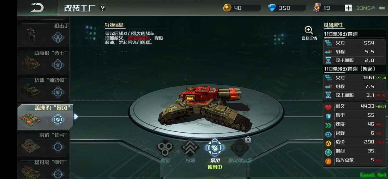 所操作的细节:(步兵任务你只能生产步兵。生产炮兵或者狙击兵就不算任务,所以操作性不是太大,也没啥好说的,今天在这里主要讲讲战车任务的主要内容).在你购买了高级通行证之后。你会得到一个铺路蝎皮肤。 可以看到铺路蝎战车与美洲豹的性能有过之而无不及,所以在大家做战车任务的时候,大家可以前期造完突一级车的时候,后期可以直接攒铺路蝎。