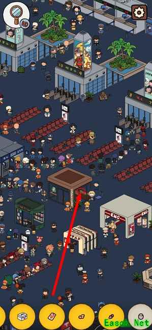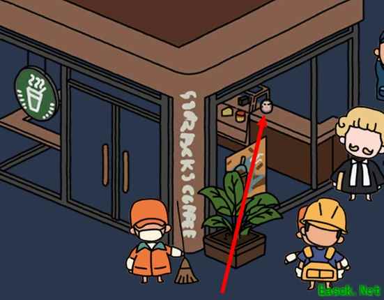 3、咖啡店在地图的右侧,旁边就是汉堡店,能看到咖啡店门口还有个穿橘黄色清洁衣服的清洁员,非常的醒目。