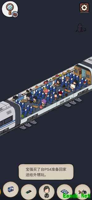 1、根据这个提示,我们可以知道,PS4要么是在游戏店里,要么就是被宝强已经带着上了列车,所以我们找一下地图中有没有可以互动的店铺,没有的话进入列车找找看有没有这个物品。