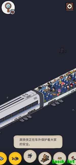 3、高铁侠就在列车的左侧,大家可以把游戏屏幕缩小之后,就能很明显的看到高铁侠在列车的左侧了。