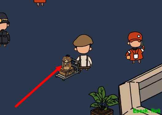 1、根据这个提示,我们可以知道旅客推着鸟笼是在信息台旁边的,信息台我们已经很熟了,所以很容易就能找到旅客在哪里。
