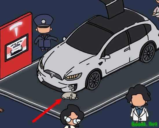 3、小狗是在这张地图的靠右一点的位置上,在一个车展上的一辆车头前面。车展旁边还有一个无障碍电梯和信息服务台,还是比较好认出来了。