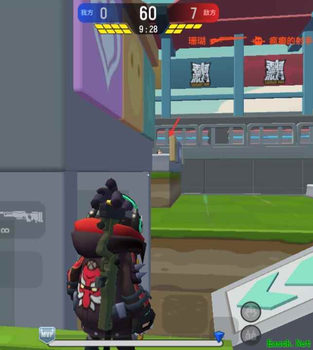 2、箭头指的方向是敌人每局都会在此对狙的地方,