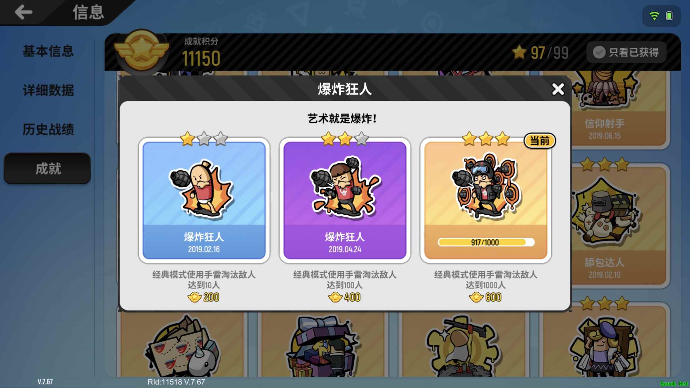 1、艺术就是爆炸的成就还是比较轻松的,只要丢手雷解决敌人就好了。 2、不过最后一个三星阶段的要求比较高,总计要手雷解决千人。 3、千人难度还是相当耗时的,特别是限定了敌人的情况下,不然能计算队友的话,就可以无脑刷了。 以上就是小编为大家带来成就艺术就是爆炸完成攻略,如果对于《香肠派对》有更多想要了解的游戏资讯,请关注游戏网。 本文内容来源于互联网,如有侵权请联系删除。 |
