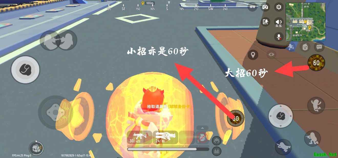 二技能与海王大招相似,都变为载具(球球一人,海王二人),但其中最大的区别在于海王船可以撞人,而球球非也。