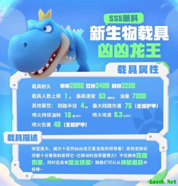 香肠派对游戏中SS5生物载具凶凶龙王怎么样?这是即将上线的新载具,下面是小编给大家带来的《香肠派对》SS5生物载具凶凶龙王属性爆料介绍,感兴趣的小伙伴们一起来看看吧。