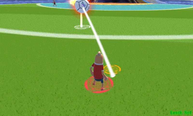 此时点击射门按钮,即可将足球向前方射出!踢出前,可以通过调整视角改变出射角度以及长按射门键进行蓄力提高出射速度!