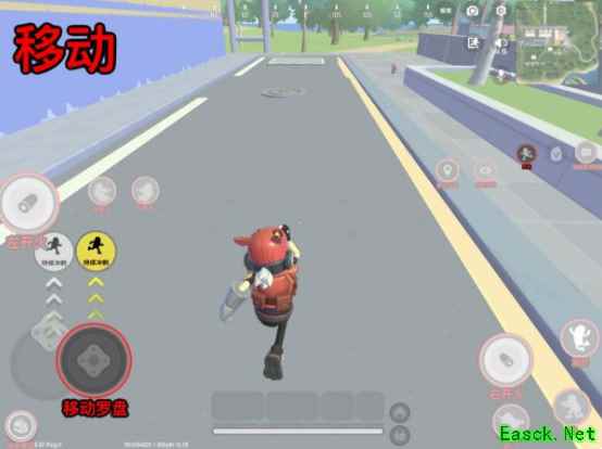 二、基础操作1.移动 通过移动「摇杆按钮/移动罗盘」的上下左右拖动进行移动,按住划至「持续冲刺」黄色点亮并松手,锁定自动奔跑,效果同点击右侧「奔跑按钮」。 再次移动摇杆或点击右侧奔跑按钮解除自动奔跑。
