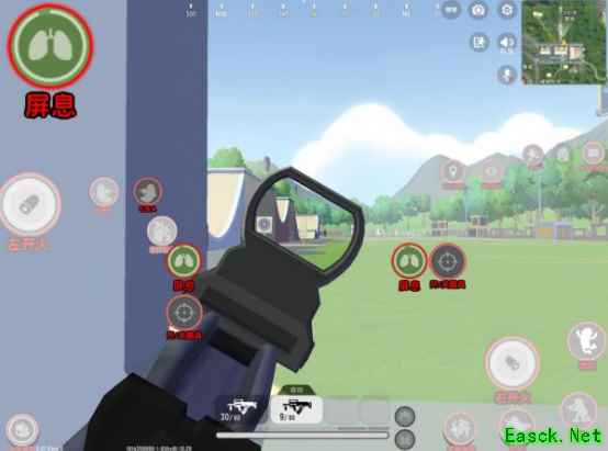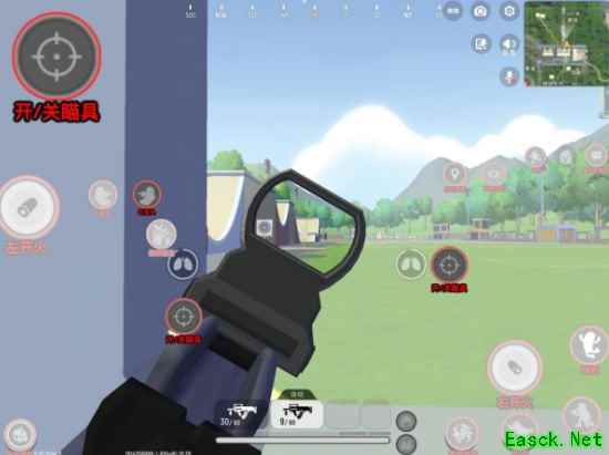 10.瞄准/攻击 使用瞄具会大大提升射击精准度,点击「瞄准按钮」开启后点击开火键进行攻击,也可以先按开火键,在射击过程中开启瞄具。