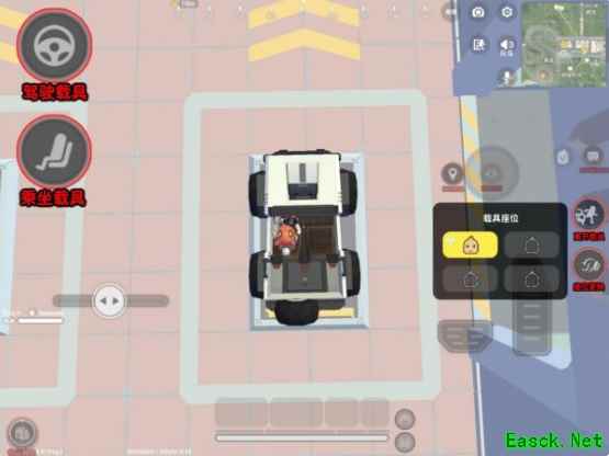 7.驾驶载具 靠近载具出现「载具操作按钮」「驾驶按钮」进到驾驶位,可操控载具。 「乘坐按钮」进到非驾驶位,无法操控载具。(可使用武器,部分载具有所限制) 进入载具「载具操作按钮」消失,出现「载具驾驶按钮」「离开载具按钮」和「换座按钮」(点击后弹出座位选择框)